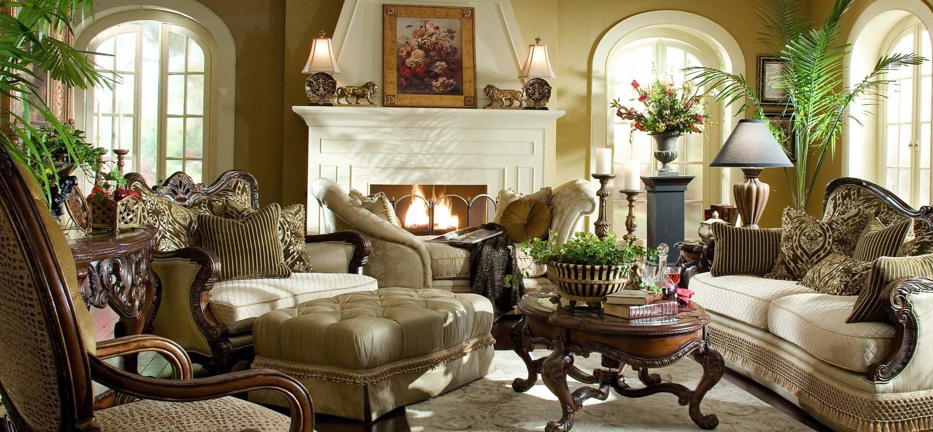 Мягкая мебель отлично дополняет классический интерьер гостиной