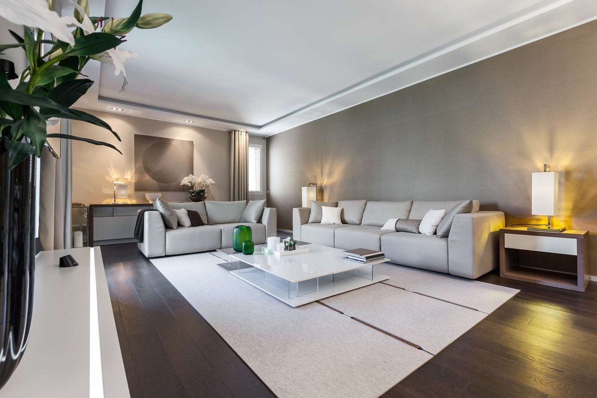 Важно создать стильную гостиную, где гармонично сочетается отделка стен, пола и потолка с мебелью. Правильно подобранная цветовая гамма поддержит единый ансамбль, подчеркнет концепцию дизайна и поможет скорректировать геометрию комнаты