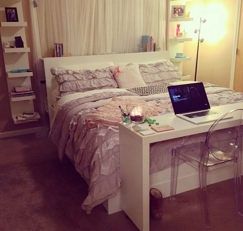 - Узкий, маленький столик, который можно разместить возле кровати и заменить рабочее место.