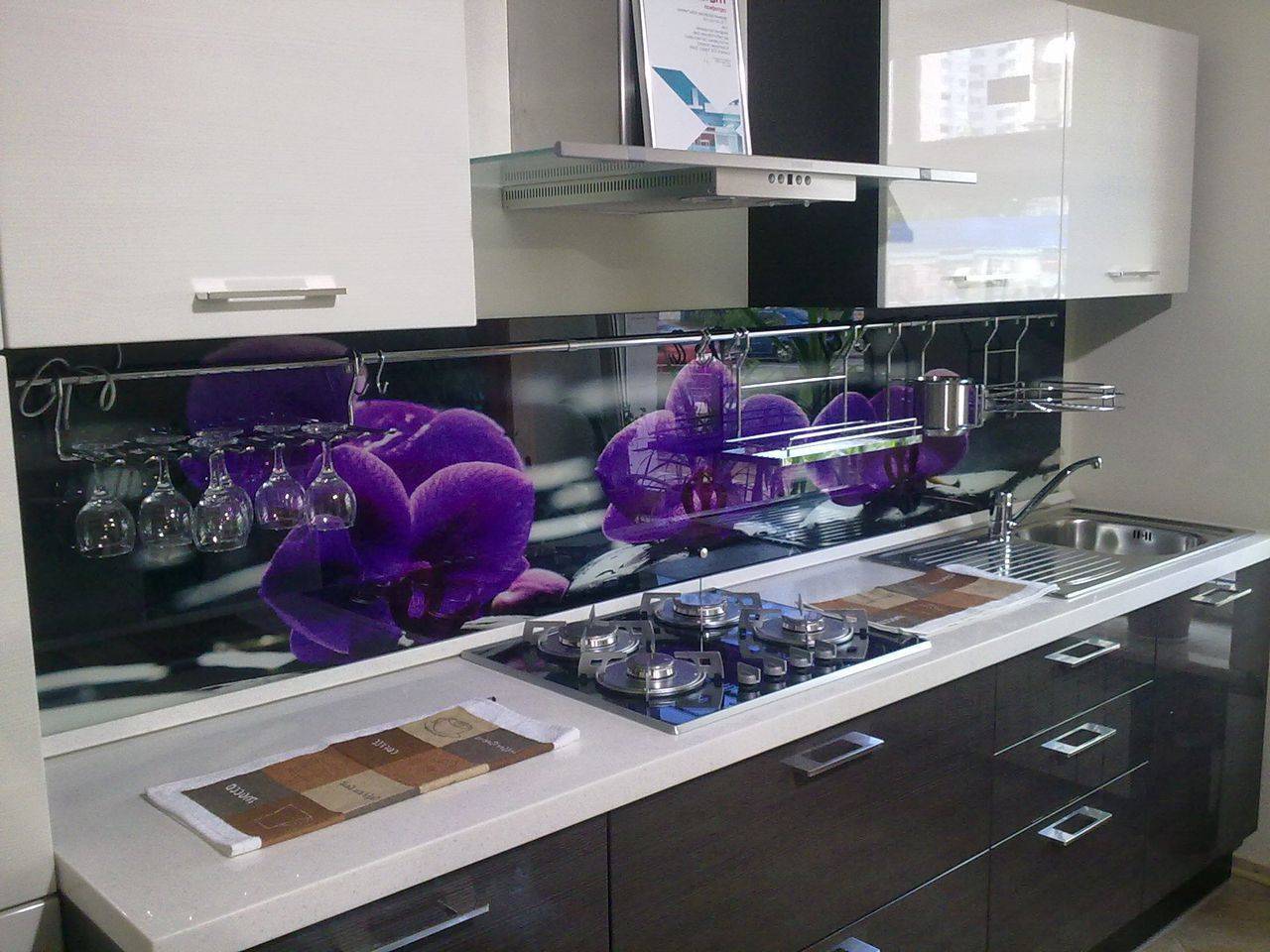 Стеклянная панель с принтом на кухонном фартуке