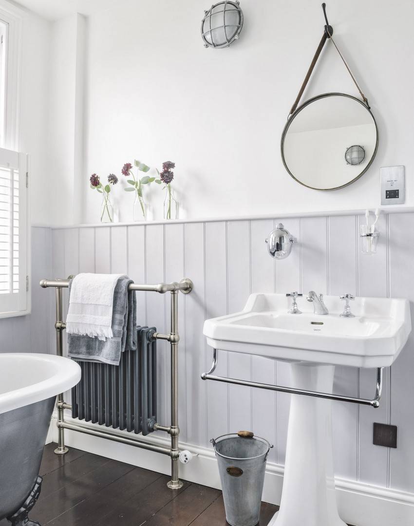 Ванная комната в светло-сером цвете смотрится красиво и очень свободно