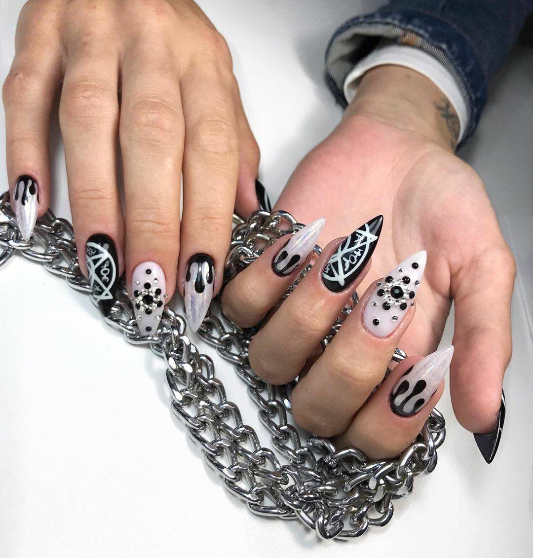 Маникюр в стиле гранж на короткие ногтевые пластины