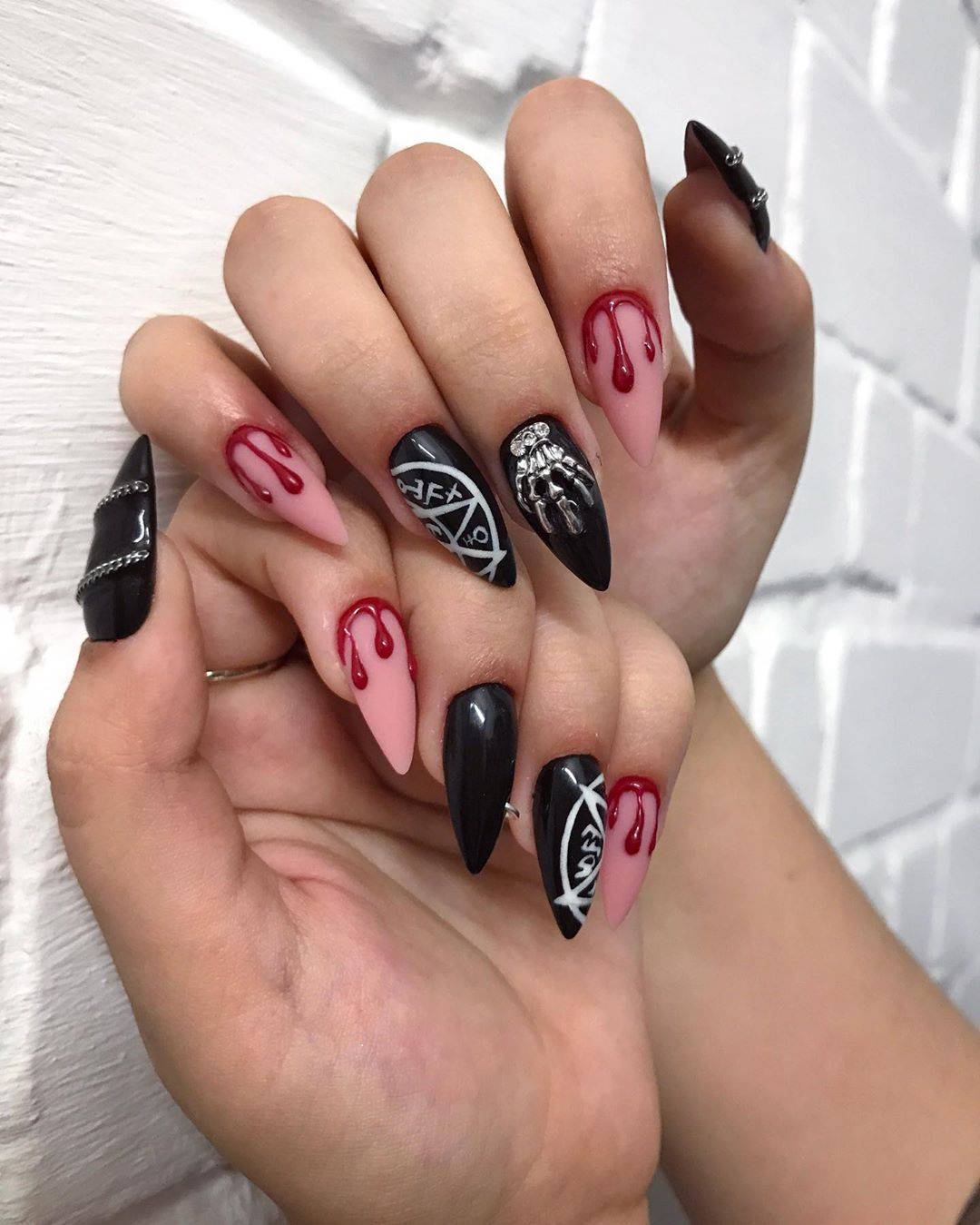Маникюр в стиле гранж – это прекрасная возможность отступить от любых норм, правил и выразить свой протест или «скрытые» желания. В этом случае модно всё, что не относится к классике, романтике и гламуру. Желаете покрыть ногтевые пластины тёмным угольным оттенком и украсить цепями? Пожалуйста! Давно мечтали изобразить на ногтях яркие кровавые потёки или неоновую дымку? Без проблем! Только не увлекайтесь подобными идеями накануне выпускного бала или торжества по случаю юбилея близкого родственника. В некоторых ситуациях лучше всё-таки использовать более лаконичное оформление.