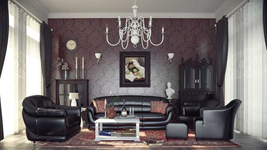 Признаком классического стиля можно назвать присутствие камина, который всегда считался элементом роскоши. Тканевая или кожаная мебель на изящных ножках также является обязательным атрибутом. Элегантности дизайну добавляет роскошная люстра или светильники.