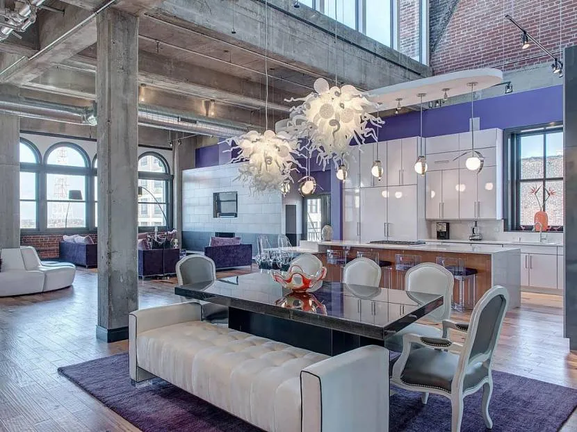 Популярность к этому стилю пришла тогда, когда осваивать интерьер начали творческие люди. Здесь использовались огромные площади, проводились выставки, концерты и вечеринки. Простые кирпичные стены, бетонные полы и высокие потолки стали особым шармом таких интерьеров, а креативные идеи по их обустройству трансформировались в роскошные дома.
