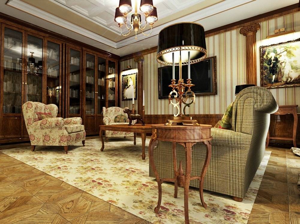 Дизайн интерьера в викторианском стиле предполагает использование качественных предметов интерьера и отделочных материалов — все должно выглядеть дорого и солидно.