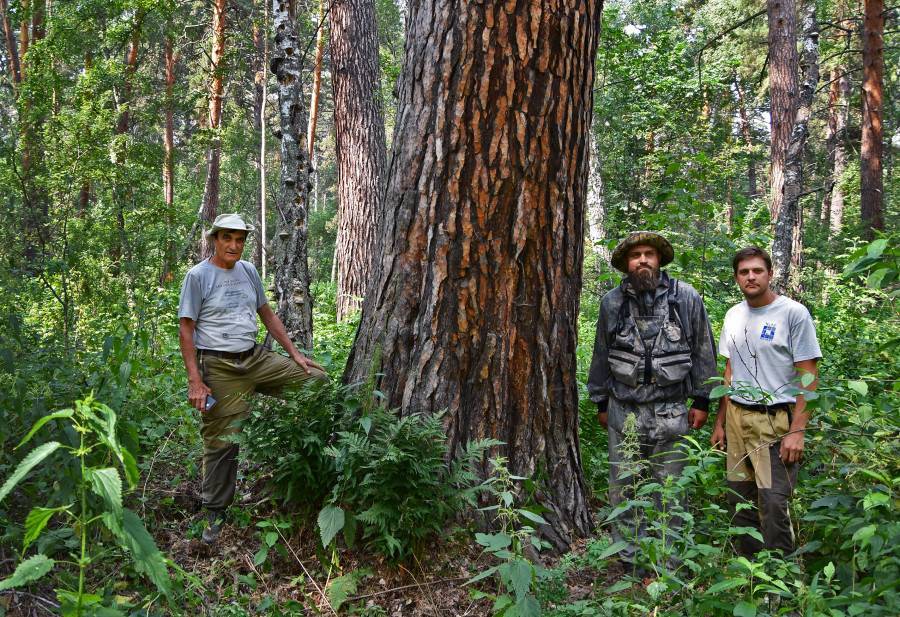 Александр Чибилев с коллегами у сосны-великана в Касмалинском ленточном бору.