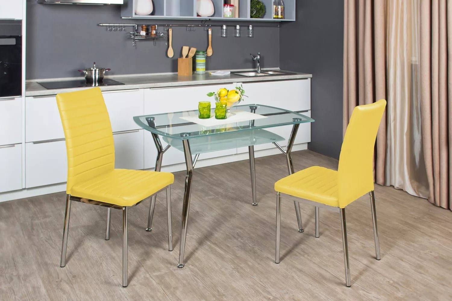Необычно и выигрышно – так часто говорят об интерьерах кухонь, в которых заметная роль отведена обеденной группе с прозрачной столешницей из стекла. Пропускающая свет плоскость будто висит в воздухе, придавая помещению легкость. Для изготовления столов используют специальные закаленные стекла или триплекс – прозрачные или окрашенные, с пескоструйным рисунком, фотопечатью, зеркальные.