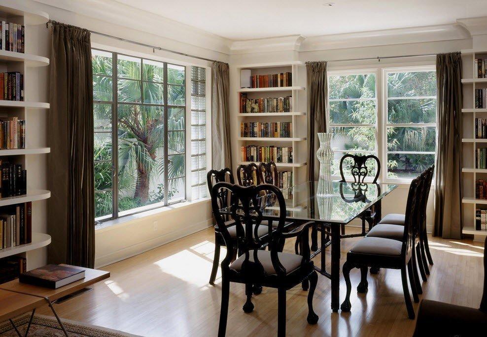 Часто в гостиной комнате можно самостоятельно оформить обеденную зону, благодаря специальным визуальным приемам: