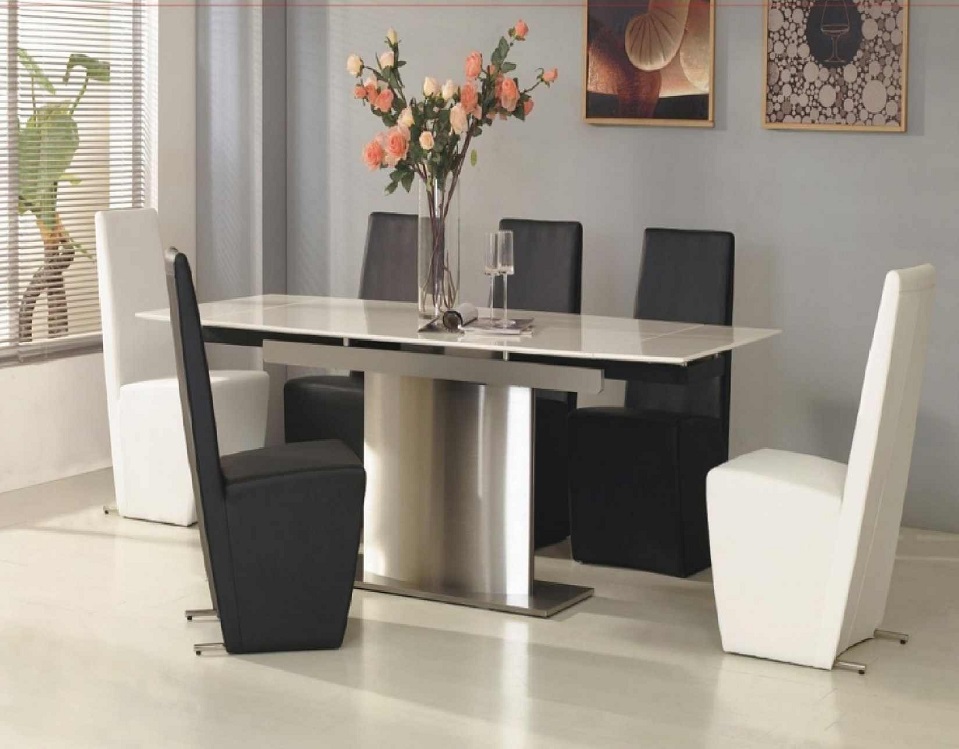 - Обеденный с раздвижным механизмом – такая мебель будет весьма кстати в интерьере небольшой комнаты. С одной стороны, он не «съедает» дефицитные квадратные метры, а, с другой – позволяет при необходимости принять много гостей;