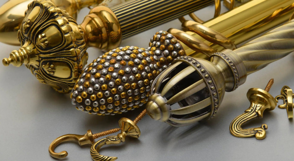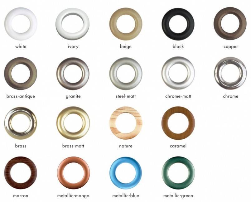 Для люверсных штор используют трубные карнизы, которые отличаются по материалу изготовления и имеют разные наконечники: