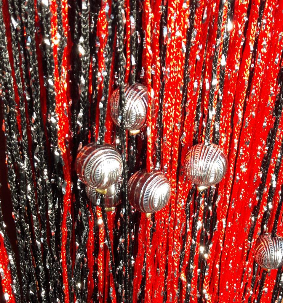 Для начала измерьте высоту дверного проема и нарежьте нити на равные отрезки. Длина отрезков должна равняться двойной высоте проема плюс 10 см. Для дверей стандартной ширины потребуется примерно 500 отрезков. Концы нитей опалите огнем или завяжите узлами, чтобы материал не распускался. Отрезки нитей сложите вдвое и завяжите на рейке, располагая их как можно ближе друг к другу. После того, как все нити будут нанизаны, закрепите их с помощью термоклея. Затем закрепите рейку над дверным проемом. Штора на двери, выполненная своими руками, готова! На нити можно нанизать дополнительные декоративные элементы, например, разноцветные бусины, пластиковые, акриловые или глиняные фигурки.