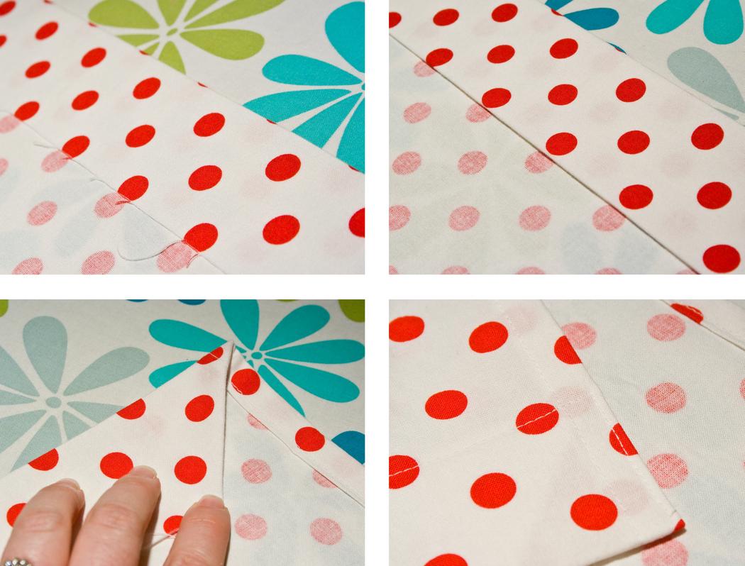 Далее отмечают необходимую длину и ширину полотен и разрезают ткань. Дважды подгибают по 0,5-0,8 мм нижний край изделия и прострачивают. Если опыта в шитье недостаточно, шов сначала необходимо приметать вручную, а после прострачивания наметку удалить.
