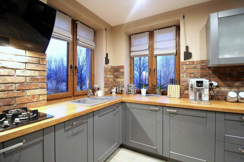 Компактное расположение кухонной мебели у окна в сочетании с короткими шторами – отличный функциональный вариант оформления кухни