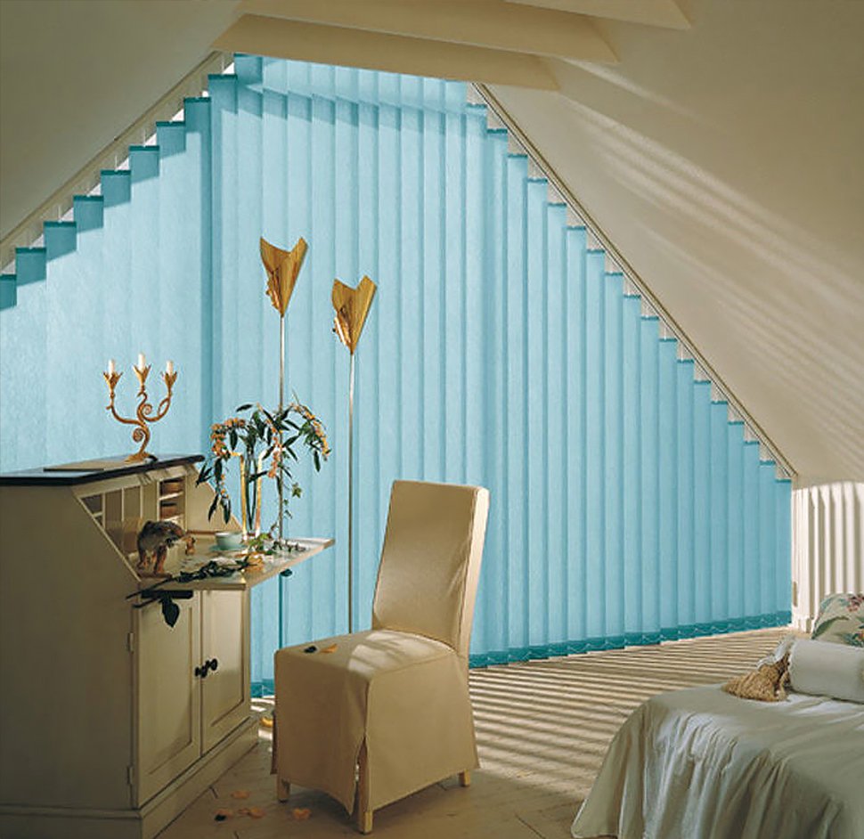 К карнизу можно прикрепить разного рода тюли и более надежные, и долговечные, но не уступающие в красоте – жалюзи. И можно не бояться устанавливать тюли на окна со скосом. Благодаря тюли, можно будет сохранить очертания окна, а также подчеркнуть наполняемость комнаты солнечным светом. Для такого окна в занавеске будет важна любая деталь, начиная от цвета и заканчивая покроем. Жалюзи, пришедшие из Франции, добавят в комнату нотки современных технологий, создадут иллюзию автоматизированного дома