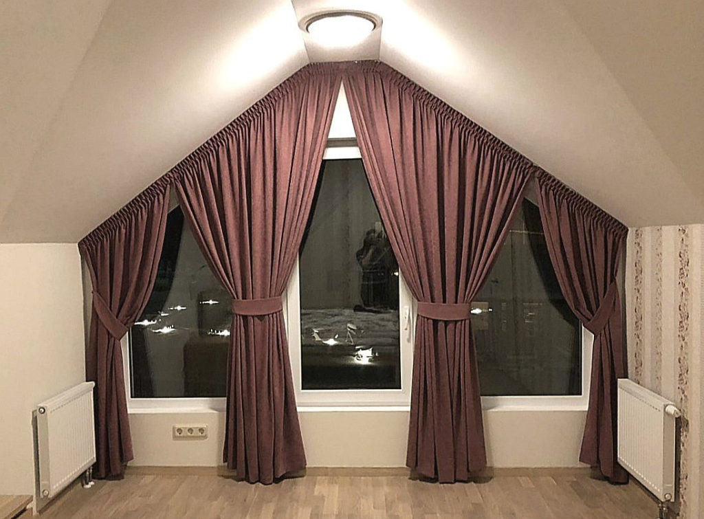 Как повесить и закрепить шторы на скошенном треугольном окне