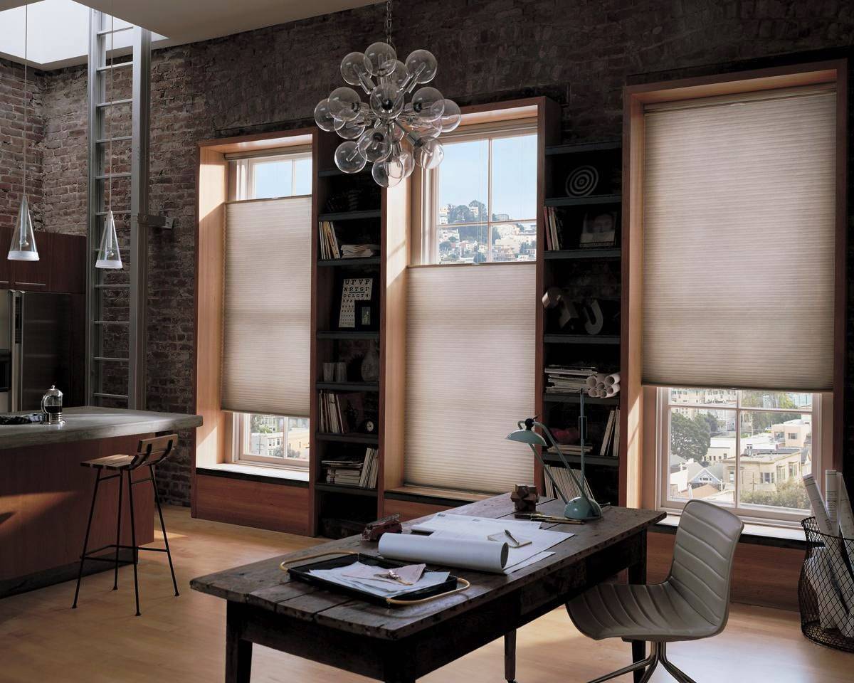 - Офисы. Здесь они не мешают освещению при этом могут в нужный момент защитить от палящего солнца. Так же в офисах отлично смотрятся шторы на люверсах, на петлях, японские шторы и шторы в стиле минимализма.