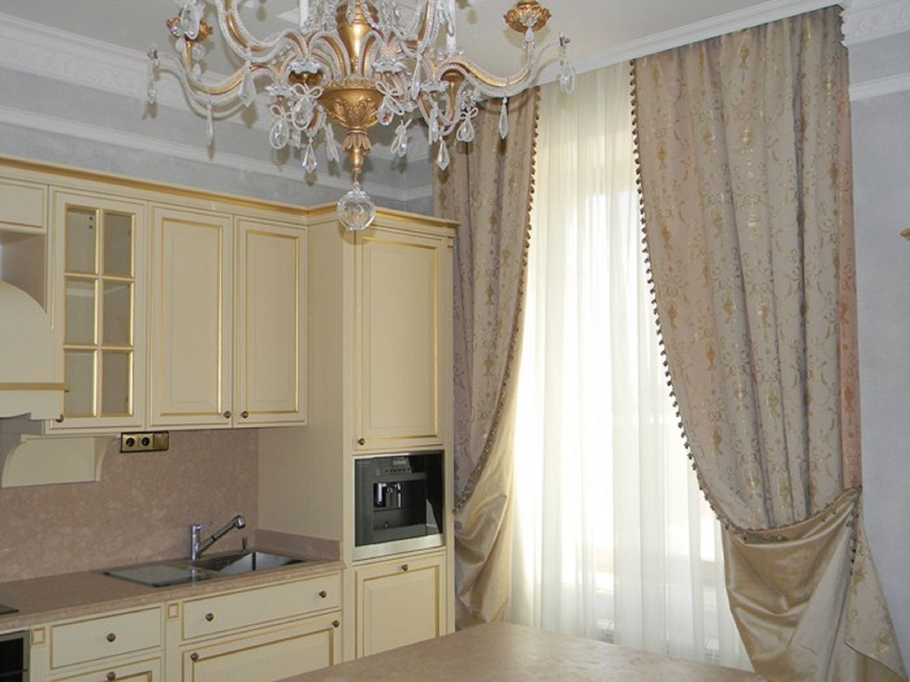 Последний пункт стоит рассмотреть подробнее. Длинные шторы на кухне имеют место лишь в том случае, когда пищеблок достаточно просторен