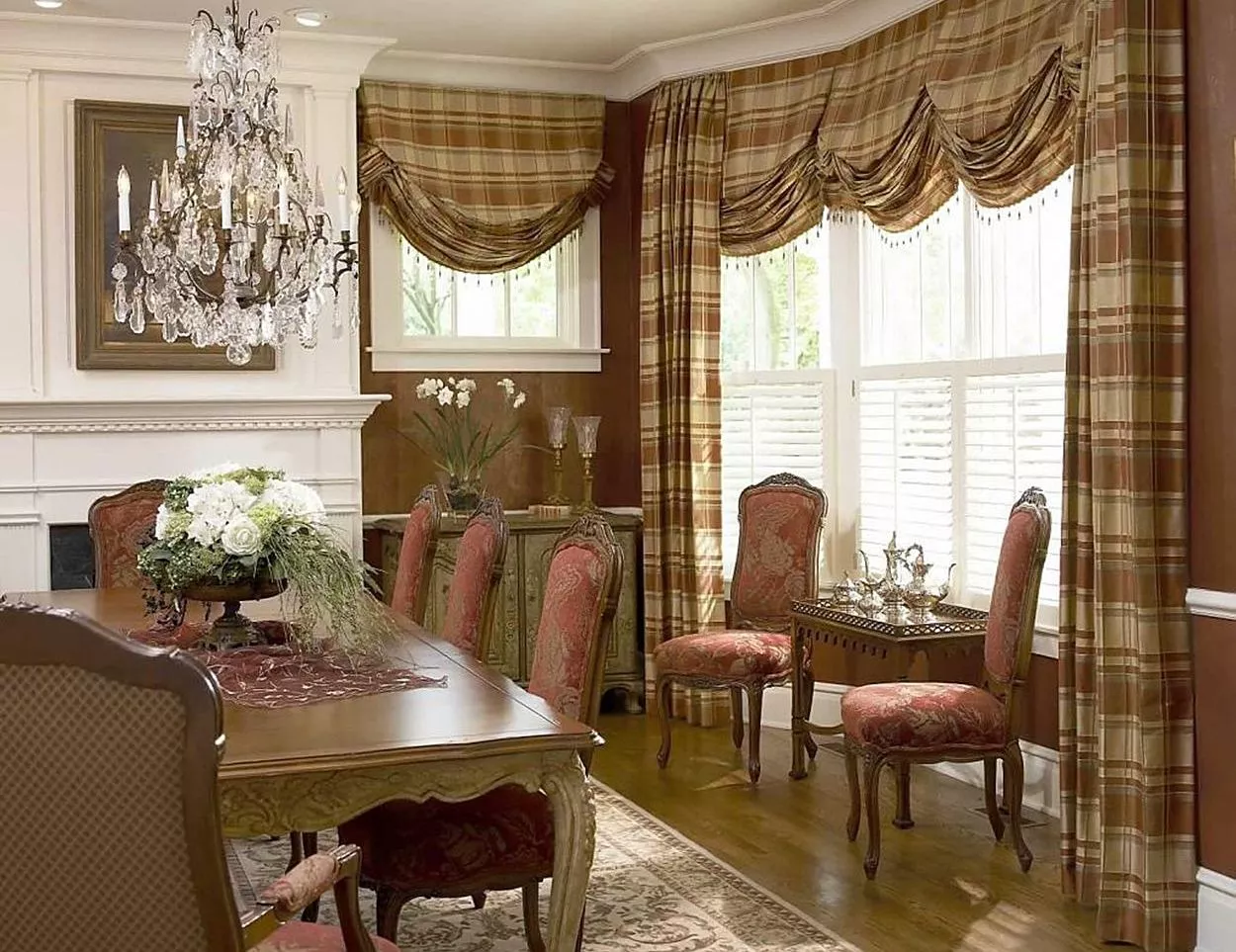 Если остановлен выбор на классическом стиле, то подойдут шторы из плотной ткани с традиционным растительным орнаментом.
