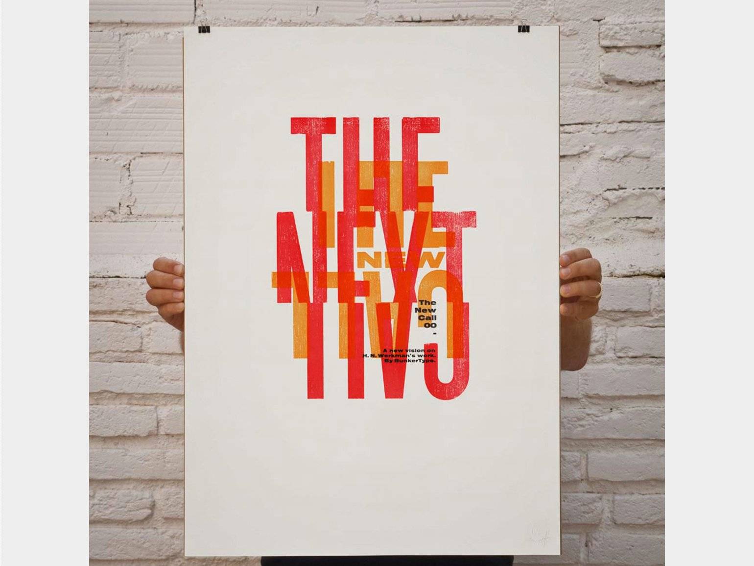 Хендрик Николаас Веркман с 1923-го по 1926-й издавал журнал The Next Call, который использовал для экспериментов в типографике. Текстуры дерева и бумаги, поцарапанный шрифт и разная толщина чернильных штрихов были частью его концептов. Даже две копии его печатных работ никогда не были одинаковыми. Именно он показал, что типографика может быть не связана с сеткой или какими-либо правилами.