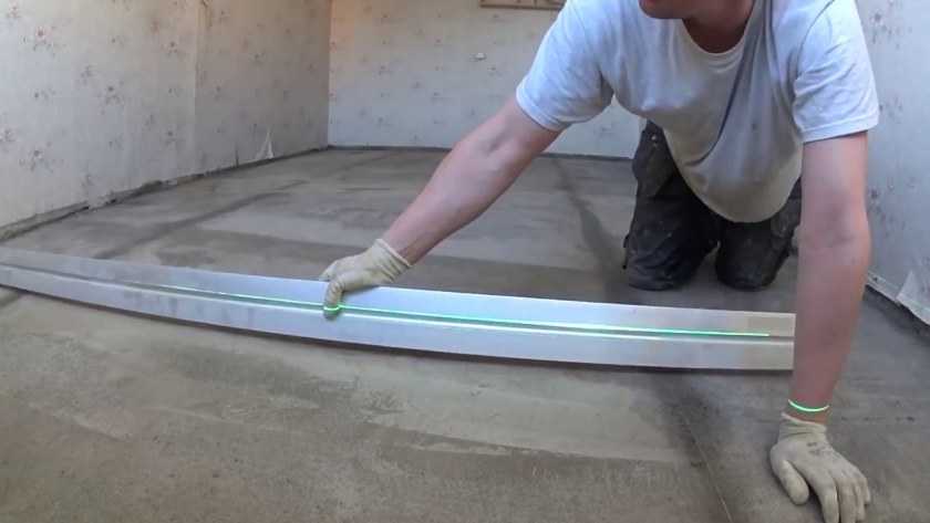 По истечении 12 часов, когда стяжка застынет, разрешено свободно ходить по ней. Отметим, маяки должны находиться внутри раствора.