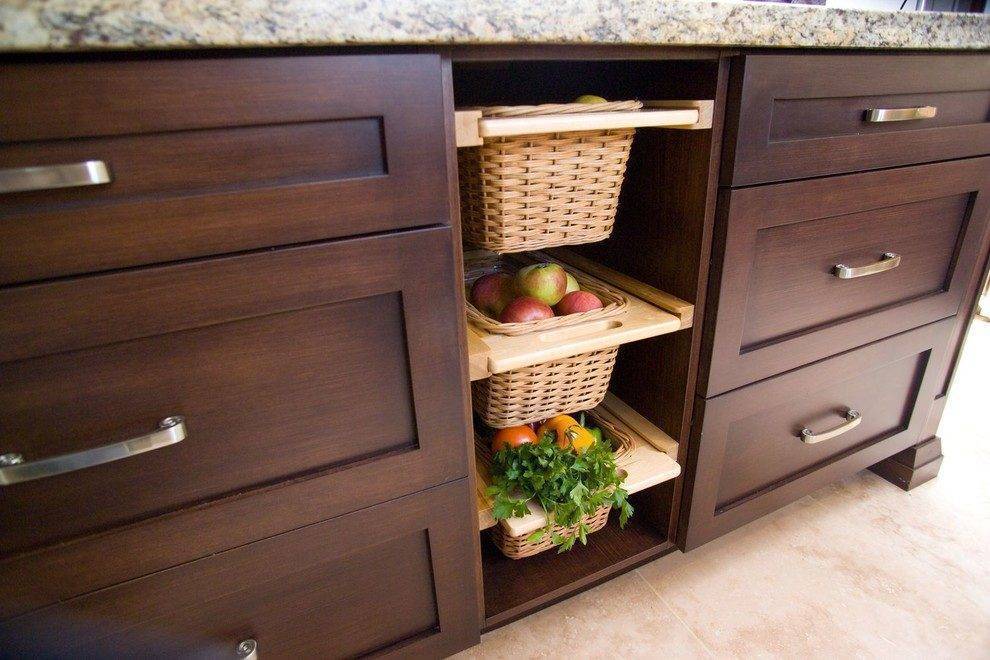 Плетеные ящики на кухне — для хранения овощей и других продуктов