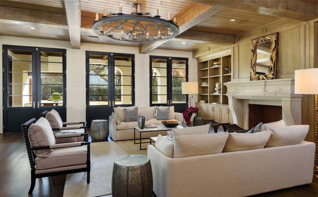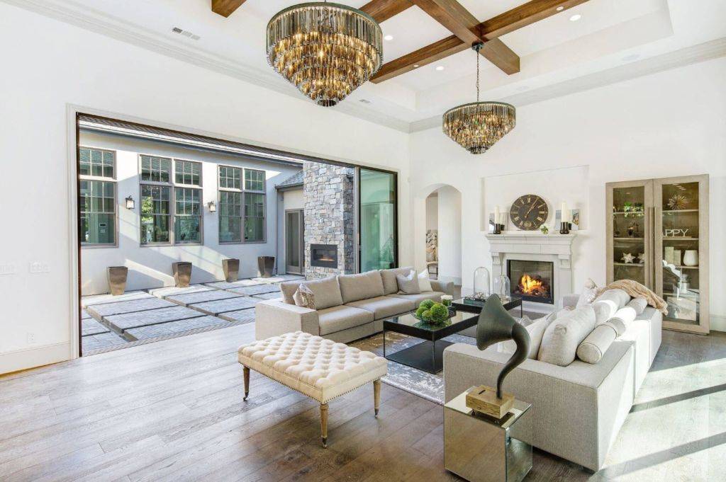 Такое решение при условии гармоничных дополнительных элементов интерьера будет выглядеть роскошно. Наряду со вторым светом используются мраморные фактуры, натуральное дерево благородных сортов, колонны в греческом стиле и даже канделябры. Дополнительно монтируют камины. Они обеспечивают тепло, создают уют и также могут разделять пространство на несколько зон.