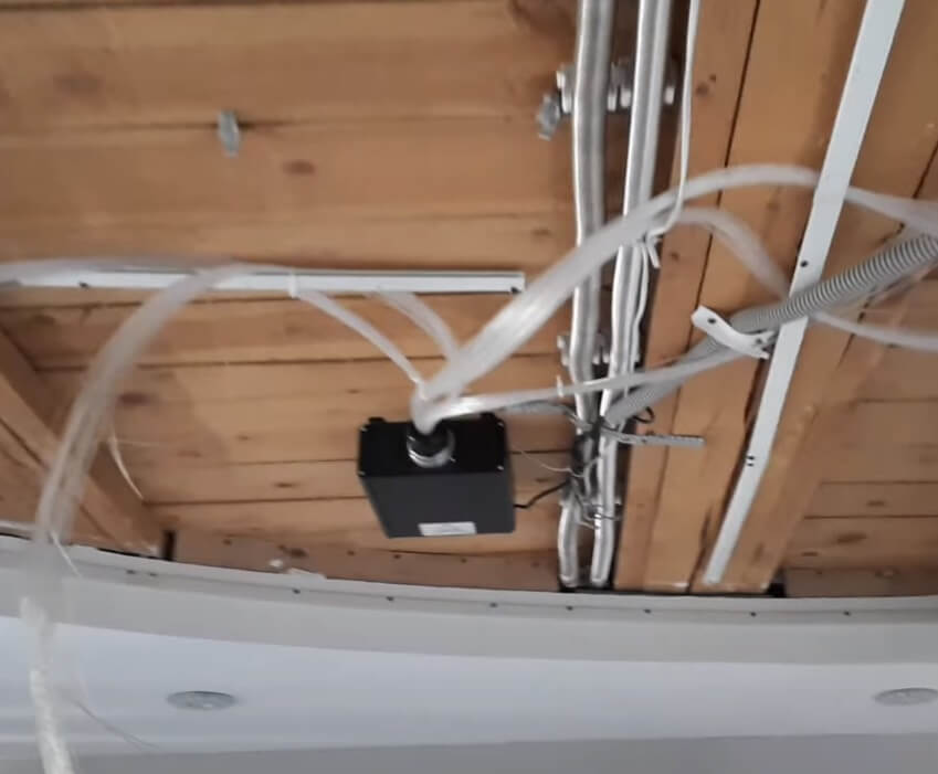 Прокол потолочного покрытия ниткой оптоволокна