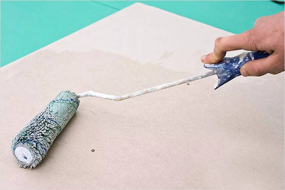 - вода наноситься на с двух сторон, валиком или малярной кистью, до тех пор, пока жидкость не пропитает картон и верхние слои гипса. Нужно следить, чтобы гипс не промок полностью;