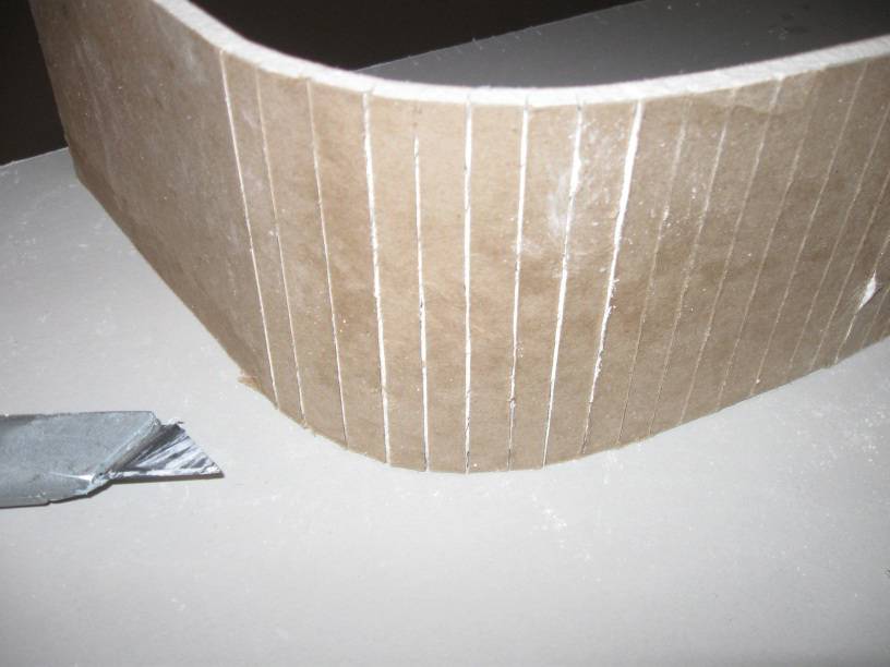 Огромным плюсом этого метода является сухое сгибание, так как благодаря разрезам заготовка из ГКЛ сразу готова к изменению формы.