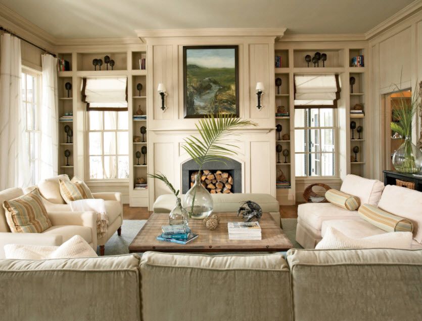 Аналогично с предыдущим вариантом в интерьере работает бежевый цвет. Им практически невозможно испортить атмосферу комнаты. Мягкие оттенки не утомляют глаз и высветляют пространство. Здесь также имеется обширный выбор сочетаний и комбинаций.