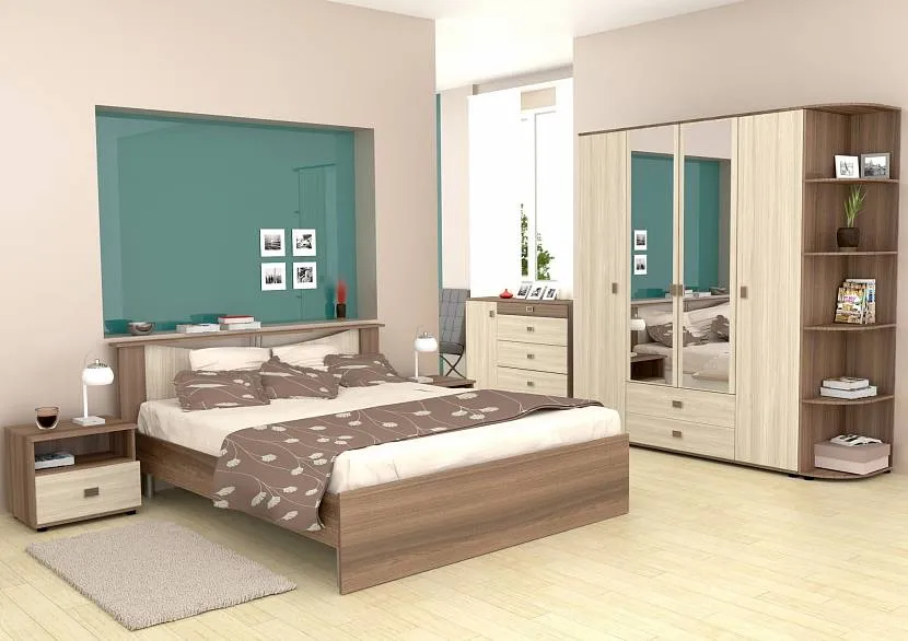 Спальный гарнитур оттенка ясень шимо Источник berhouse.ru