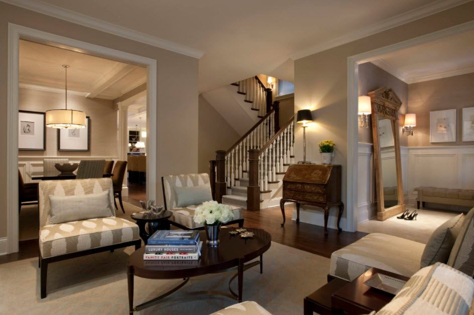 Сейчас в оформлении современных квартир, загородных домов дизайнеры часто выбирают темные тона для гостиной. В прежние времена в этой комнате часто устраивались семейные праздники, развлечения. Светлая комната создавала для таких мероприятий соответствующую атмосферу.
