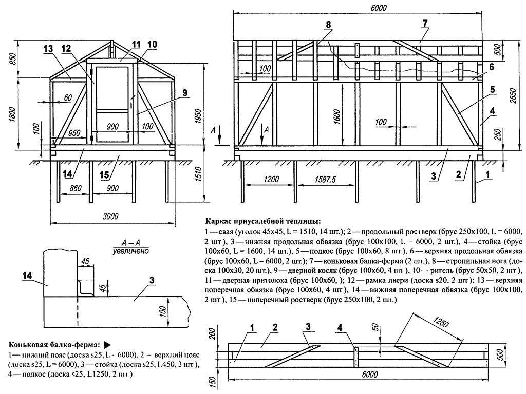 Исходя из этого можно определить количество деталей для теплицы определенных размеров. Для конструкции размерами 6х3 м будет нужно: