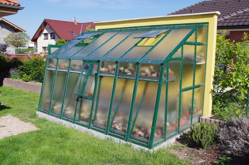 Если на участке имеется подходящее строение под установку односкатной теплицы – стоит остановить свой выбор на этом варианте. Дополнительным преимуществом здесь будет выступать тот факт, что можно снизить затраты на обогрев, т.к. конструкция уже примыкает к отапливаемому помещению.
