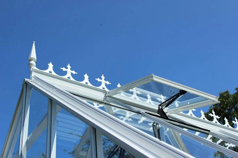 Автоматизация микроклимата. Полезный аксессуар для тех, кто не может постоянно жить за городом, а вынужден периодически уезжать (по работе или в отпуск). Автоматическая система включает термопривод, который не дает перегреваться воздуху, открывая фрамуги при повышении температуры. Постоянный воздухообмен защищает огородные культуры от обезвоживания и увядания. Если к вечеру температура понижается, форточки закрываются, и в помещении сохраняется нужный уровень тепла.