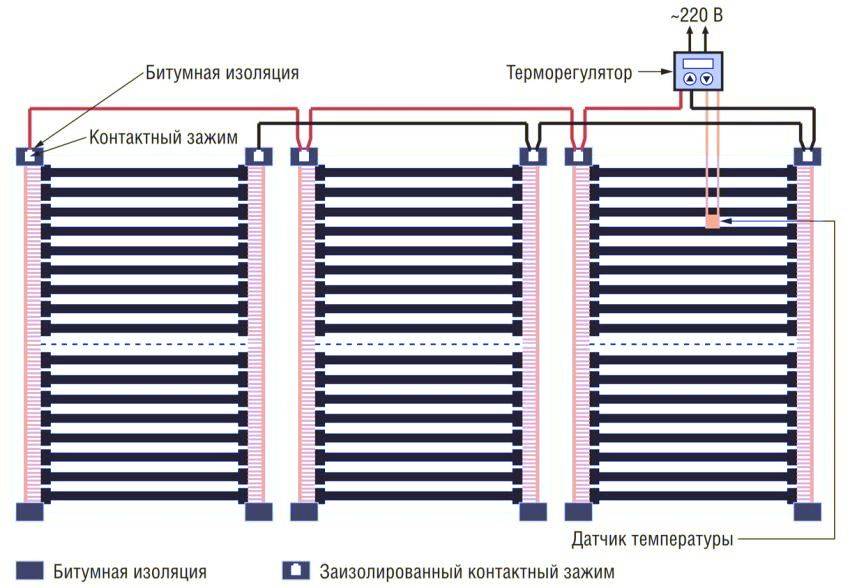 - Инфракрасные маты. Карбоновые стержни в оболочке соединены токопроводами параллельно в пластины.