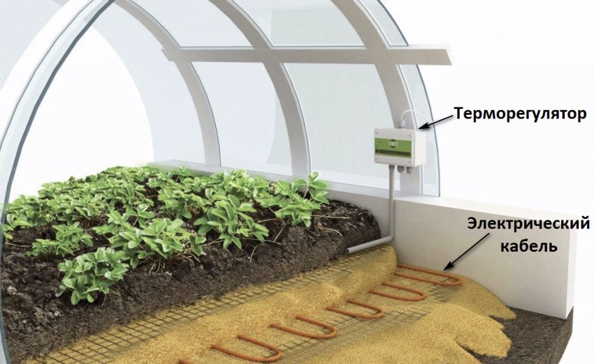 Для кабельного подогрева земли в теплице используют электронагревательный кабель, имеющий удельную мощность от 75 до 100 Вт/м2.