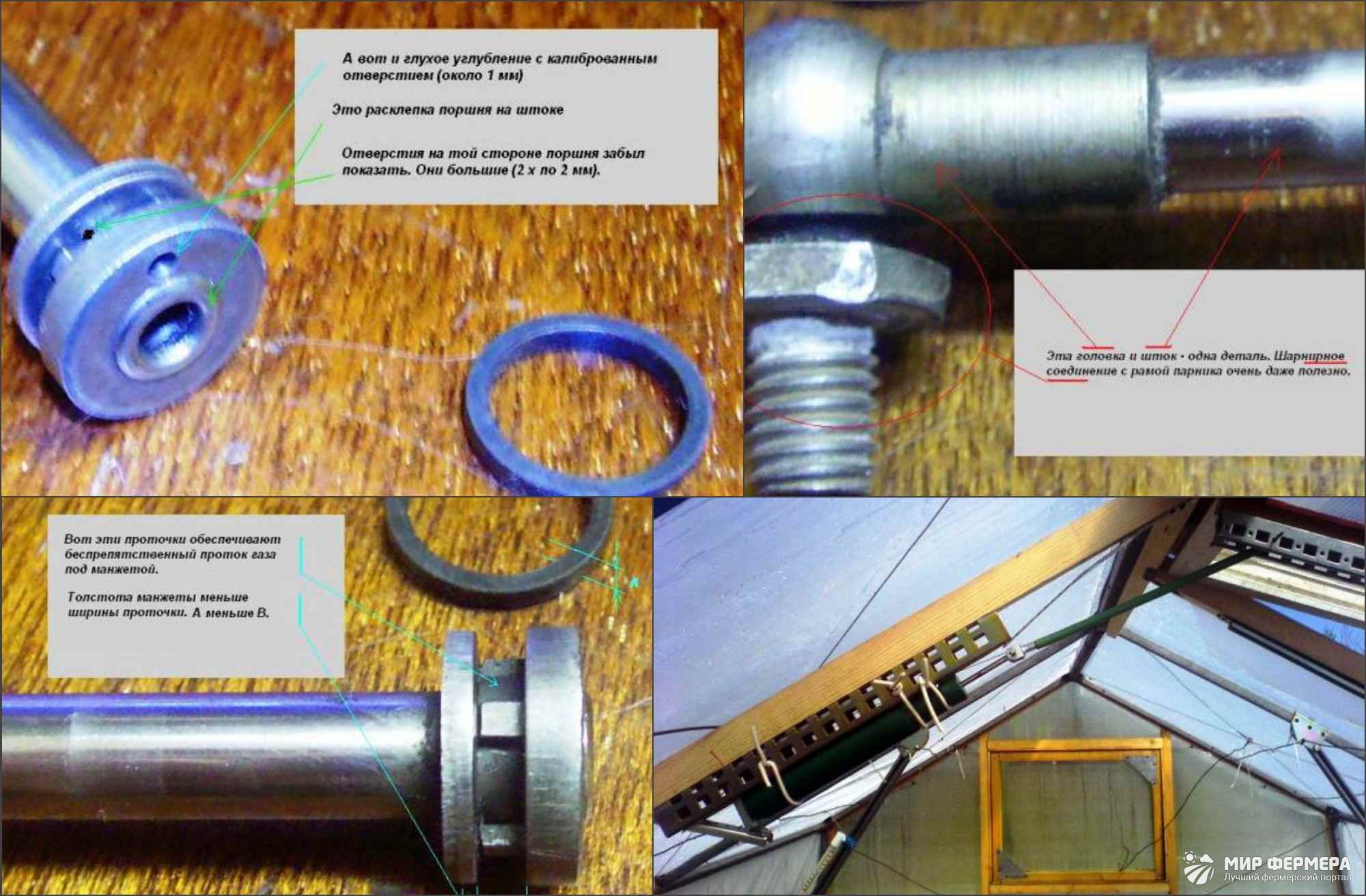 Существует множество готовых вариантов устройств для проветривания, но гидроцилиндр, который сделан своими руками из подручных средств, является наиболее простым решением. В таком случае понадобятся некоторые запчасти и элементы, а также знание технологии изготовления устройства, которое имеет простой принцип работы. Такую конструкцию достаточно просто изготовить для теплицы с помощью простых подручных средств.