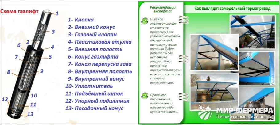 Открывание теплицы в автоматическом режиме: установка термопривода