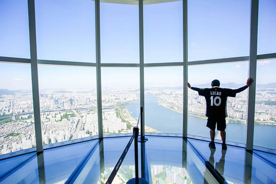 Башня построена рядом с Всемирным парком Лотте недалеко от реки Хан. И парк, и река прекрасно видны с четырех смотровых площадок, расположенных на последних этажах небоскреба.