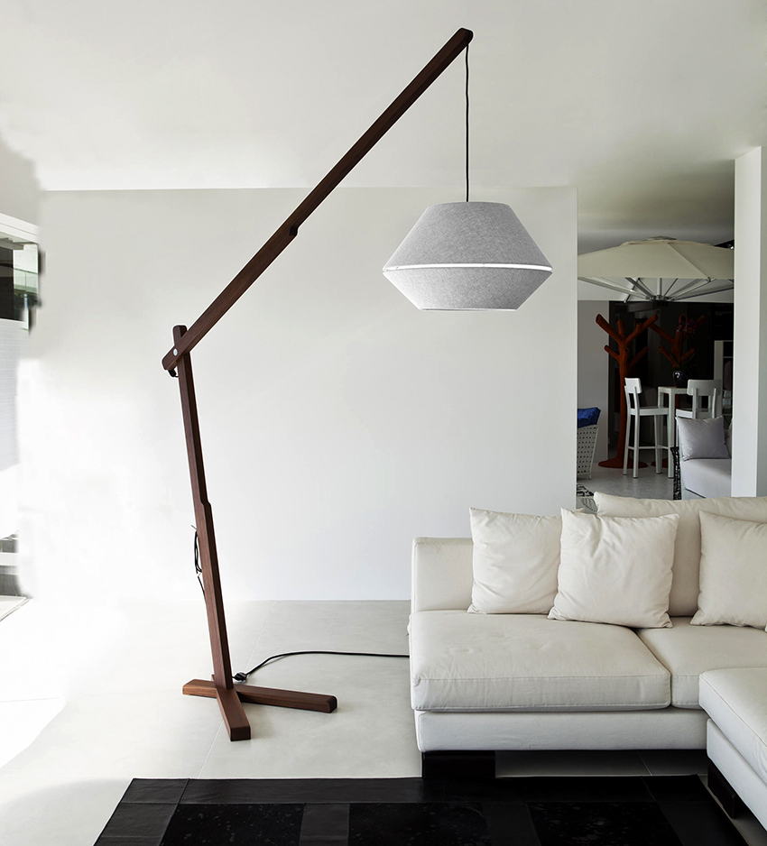 На фото минималистичный интерьер гостиной, украшенной торшером на деревянной ножке.