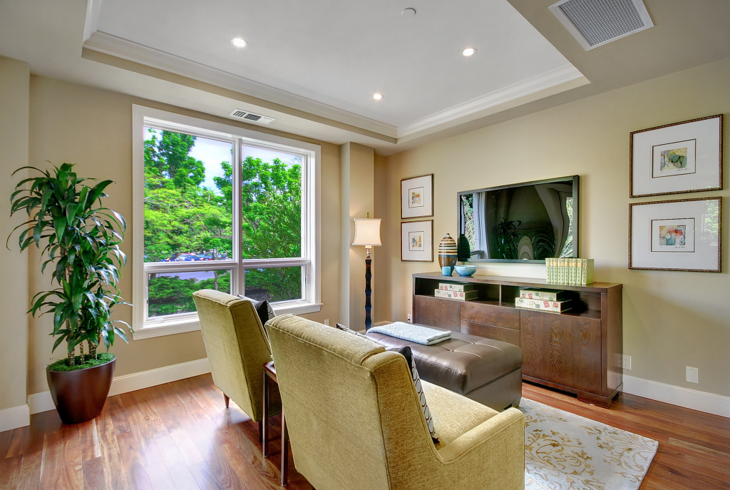 Отсутствие окон сбоку или напротив. Лишь самые современные модели с технологией OLED не реагируют изменением цветности на яркие солнечные лучи. Остальные телевизоры ответят вам неправильной цветовой гаммой с эффектом засвечивания. А еще это негативно сказывается на зрении. В крайнем случае обзаведитесь плотными шторами;