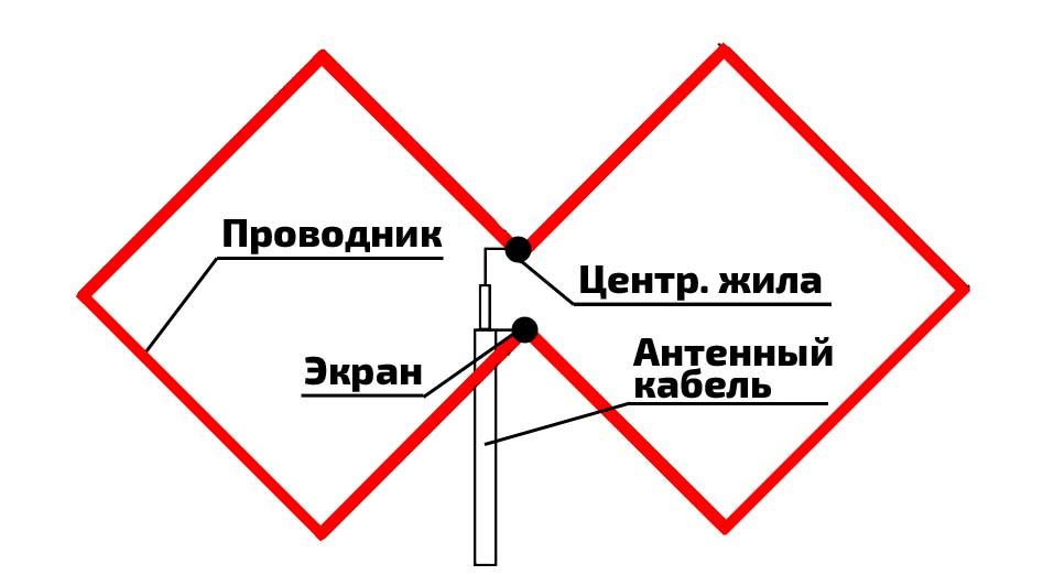 Рис. 1. Простейшая самодельная Z-антенна, известная под названиями: «Ромб», «Квадрат» и «Народный зигзаг»