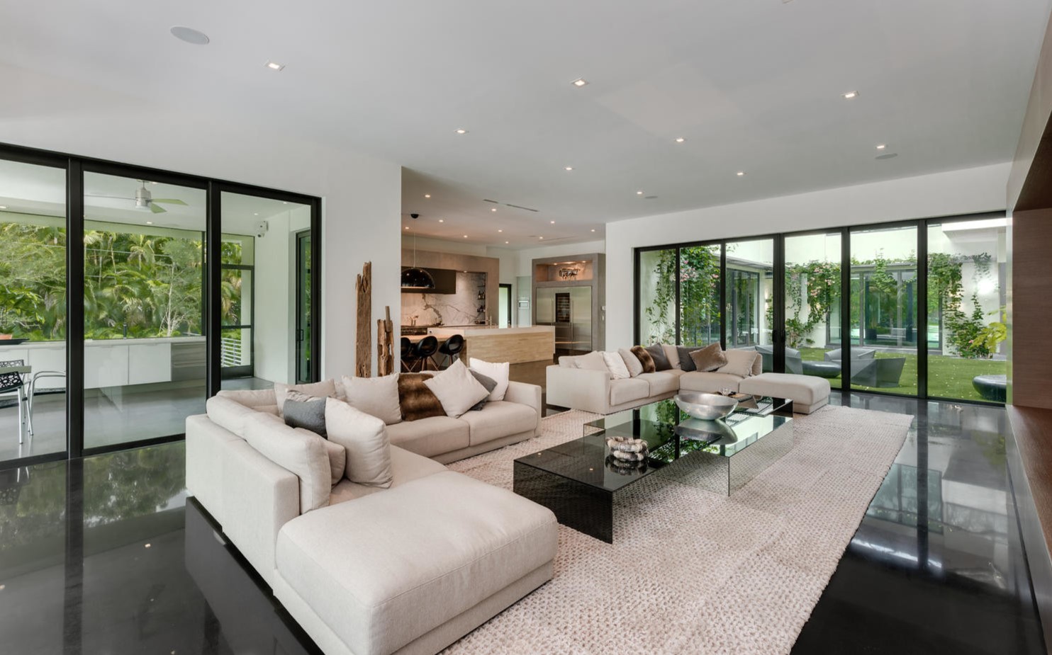В большой гостиной в частном доме можно разместить два угловых дивана