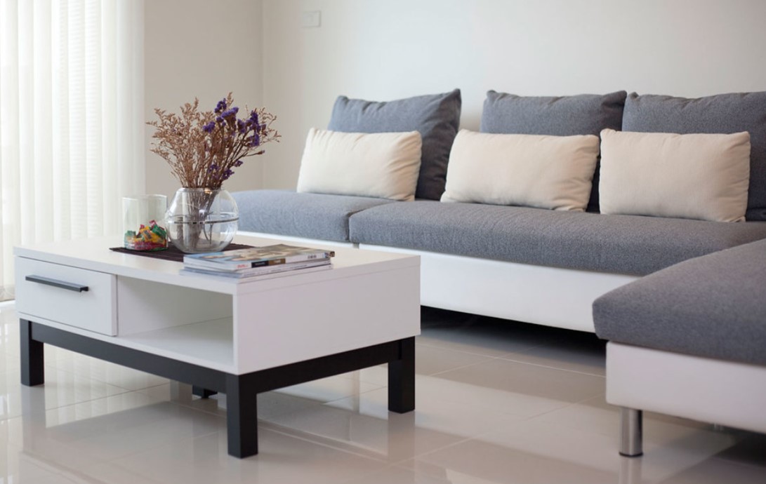 Диван с комбинированной белой и серой обивкой подойдет для скандинавского интерьера