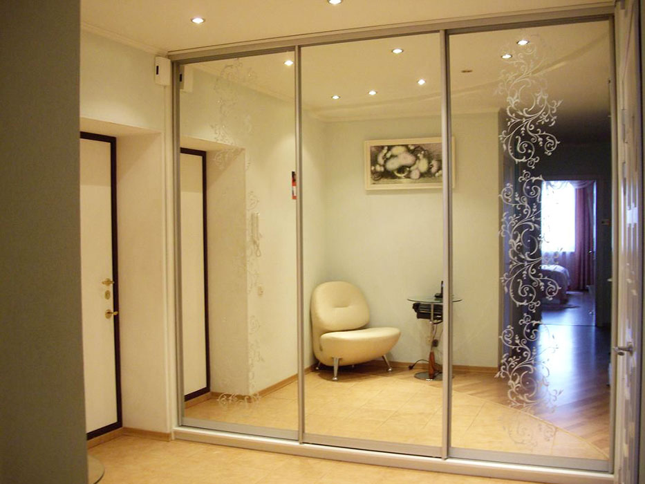 Зеркало в прихожей визуально расширяет пространство. Хороший вариант будет отделать шкаф-купе зеркальной поверхностью.
