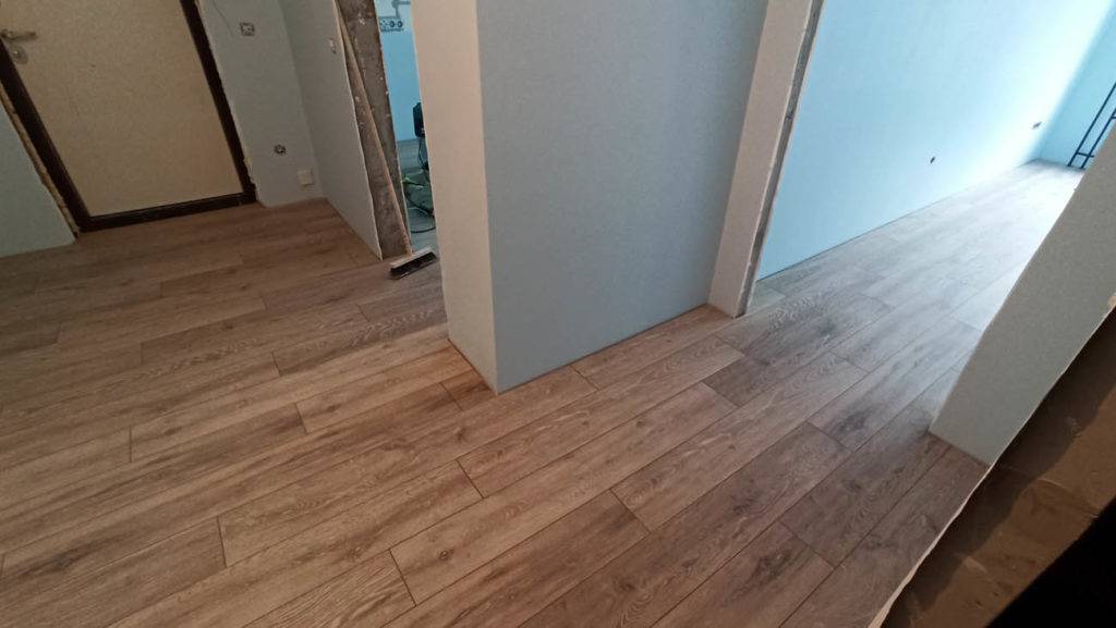 И тогда возникают такие вопросы, касаемые напольного покрытия. При условии, что застилаем всю квартиру одним материалом.