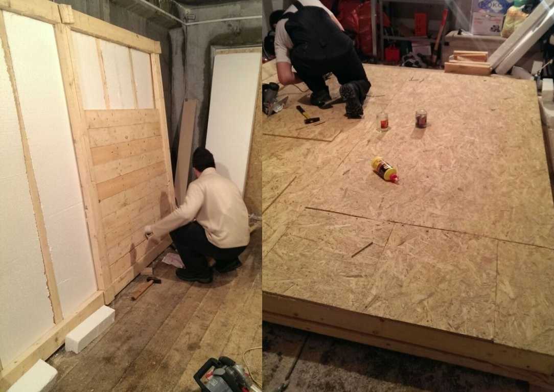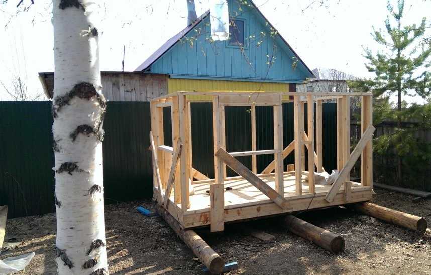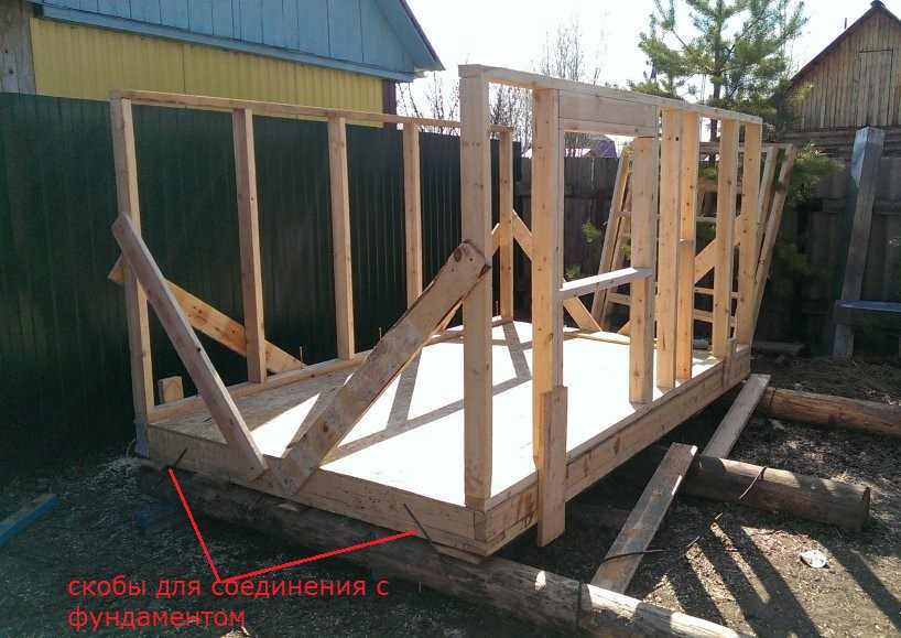 - возведение домика нужно начинать с создания пола. Сделайте каркас, используя для его усиления балку и металлические уголки;