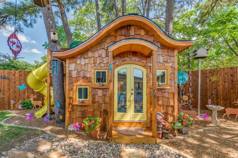 Место для строительства нужно выбирать просторное. Если территория двора или дачного участка позволяет, то вокруг домика можно обустроить клумбы, разбить маленькие грядки и оградить мини-дворик маленьким заборчиком. Это придаст домику одновременно естественность и сказочность.
